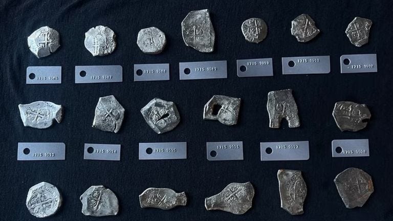 Divers from salvage firm 1715 Fleet – Queens Jewels, LLC have recovered over 1,000 gold and silver coins off the Florida “Treasure Coast,” estimating the haul to be worth around $1 million. These coins are believed to be from the ill-fated 1715 Spanish treasure fleet, which was carrying wealth from colonies in Bolivia, Mexico, and Peru back to Spain when a hurricane wrecked the ships in July 1715.